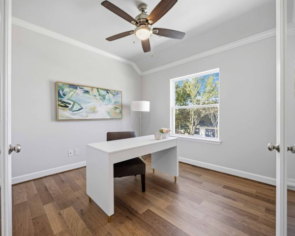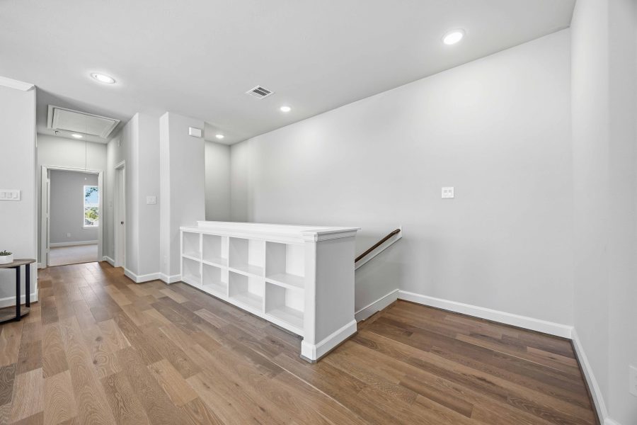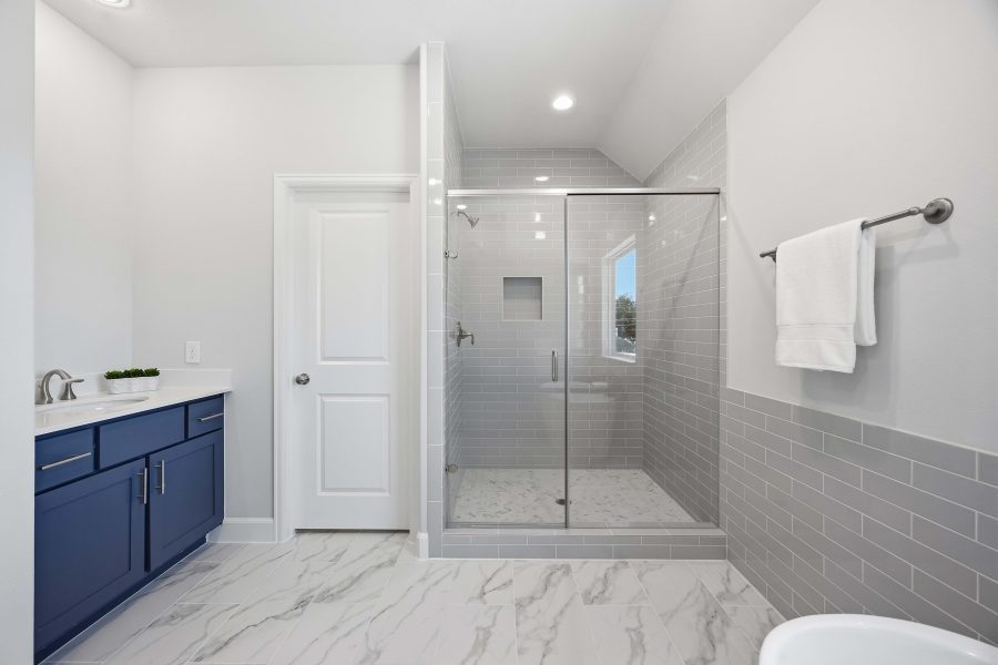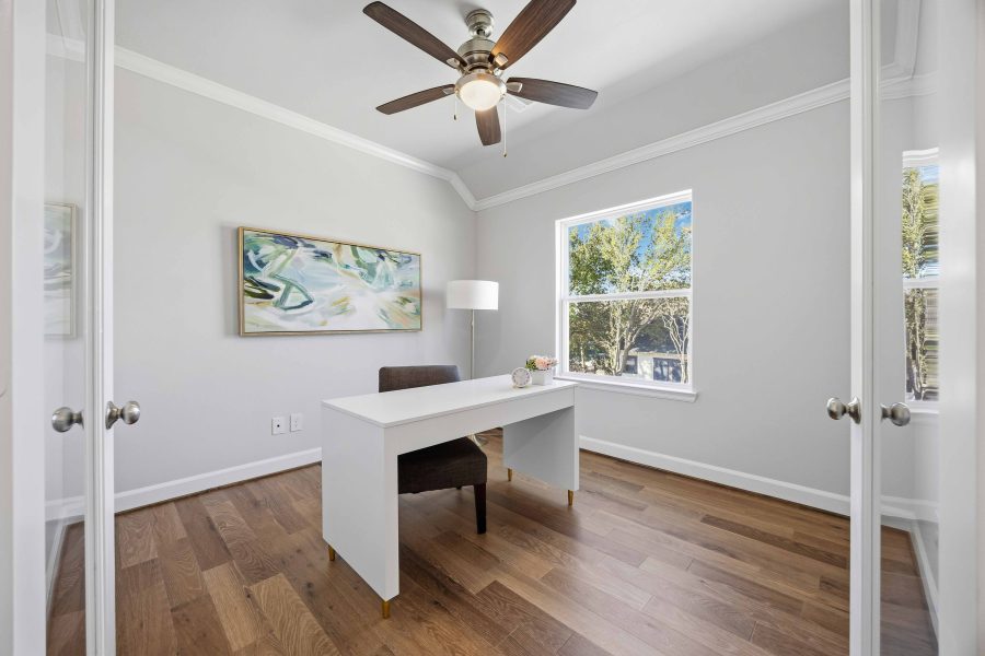 The first floor features a beautiful kitchen with custom cabinets, quartz countertops, and stainless steel appliances. The large island looks into the dining area, which then leads into the spacious living room. Upstairs, you will find the game room, complete with built-in shelves and an enclosed study. All of the bedrooms are on the second floor, including the utility room. The Primary Suite is spacious with tall ceilings and features two generously sized walk-in closets. The spa-like Primary Bath, highlighted by the separate shower and soaking bathtub, boasts two vanities.