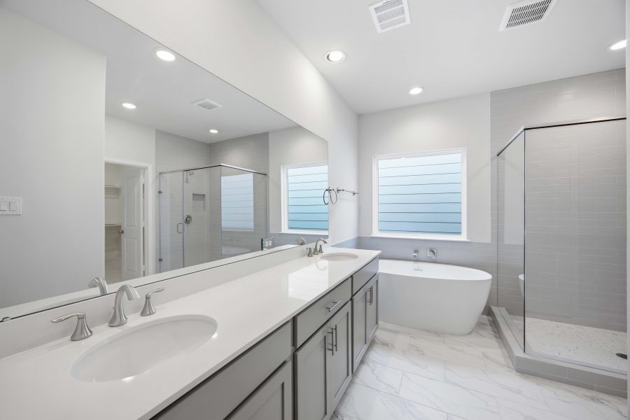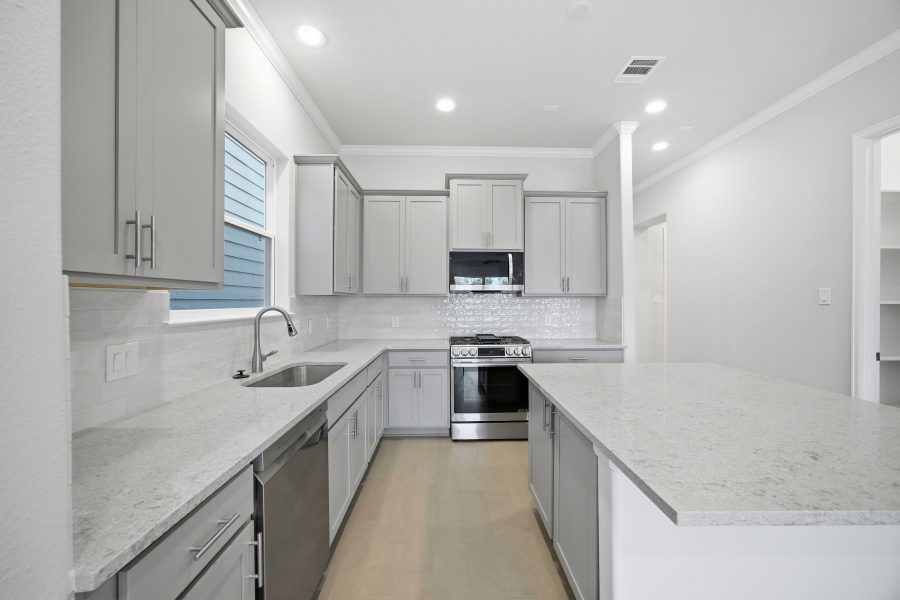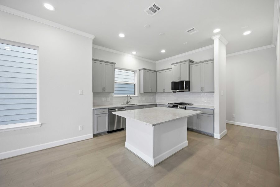 The Monterrey is our newest floor plan making its debut in 2023! This plan features 3 bedrooms, two full baths, one-half baths, and an upstairs loft. The first floor features a beautiful kitchen with custom cabinets, quartz countertops, and stainless-steel appliances. Head upstairs for all of the bedrooms, including the utility room. The Primary Suite is spacious with tall ceilings and features a generously sized walk-in closet. The spa-like Primary Bath, highlighted by the separate shower and soaking bathtub, boasts two vanities. The home has a 2-car garage and its own private driveway.